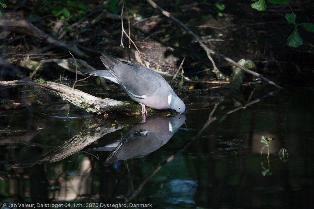Ringdue (Columba palumbus) drikker vandGentofte Sø 1. juni 2020
