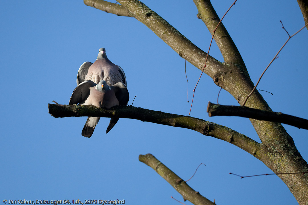 Ringduer (Columba palumbus) i parringDalstrøget, Vangede 28. februar 2019